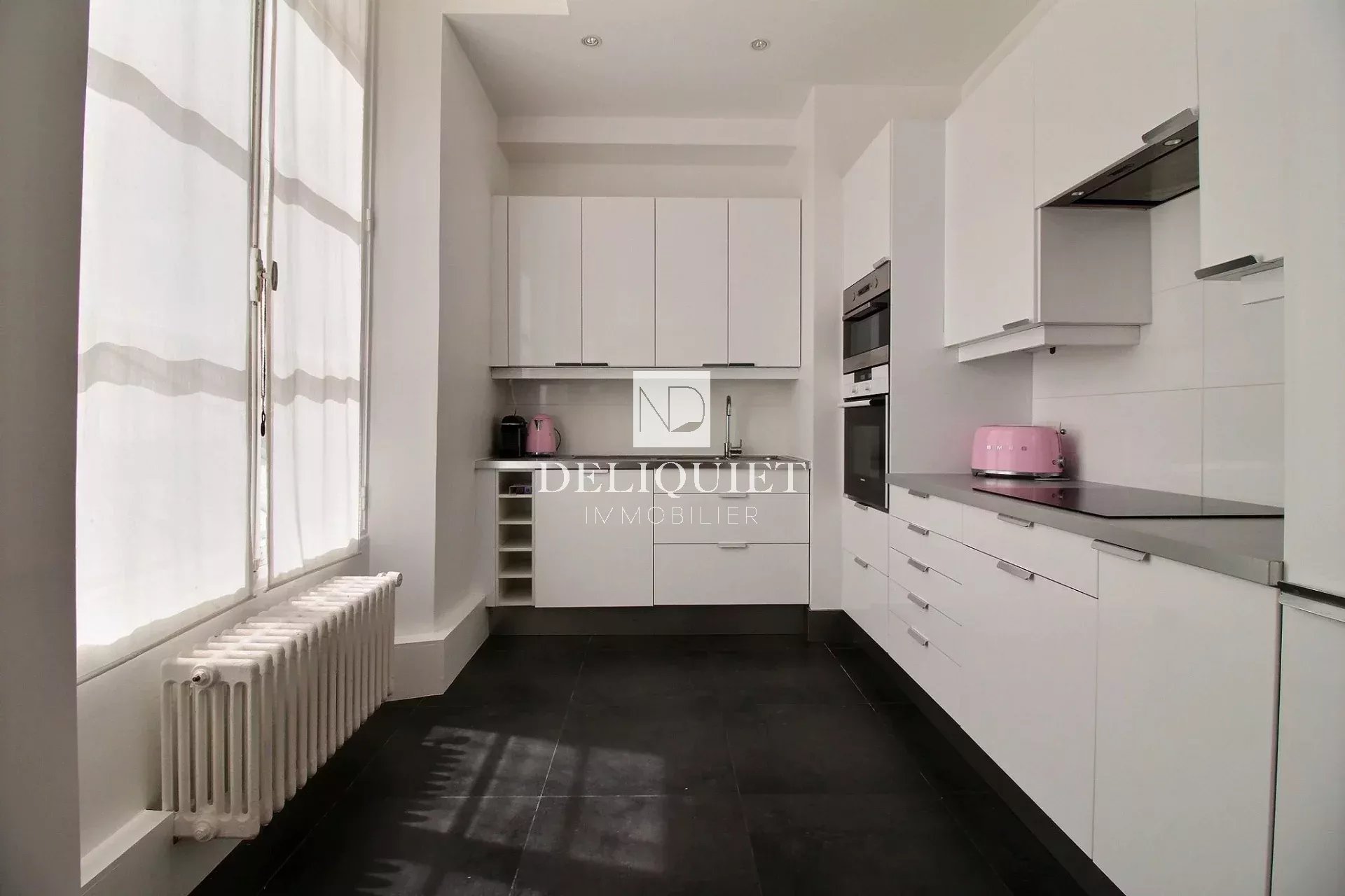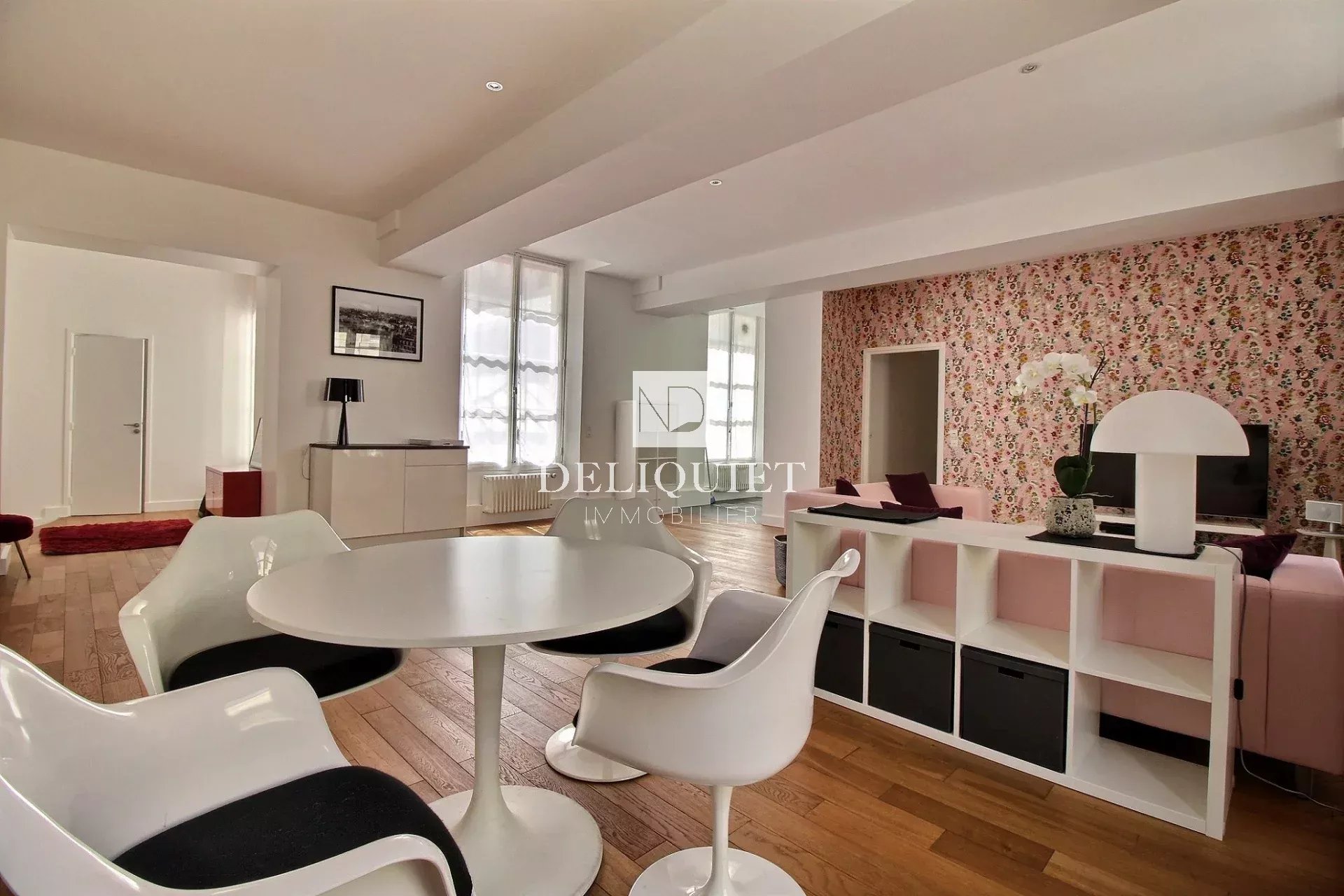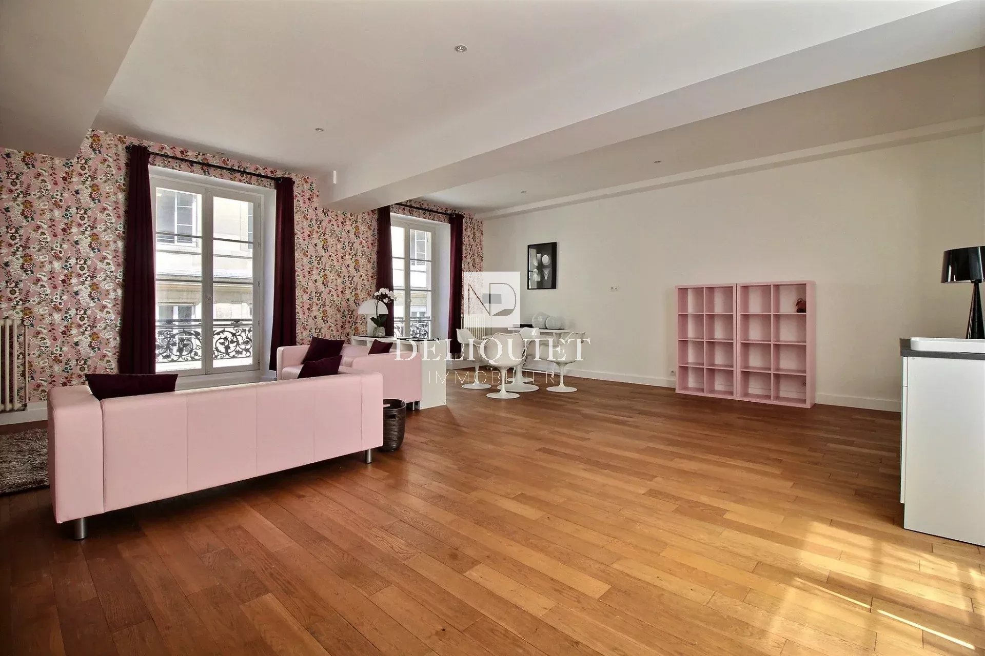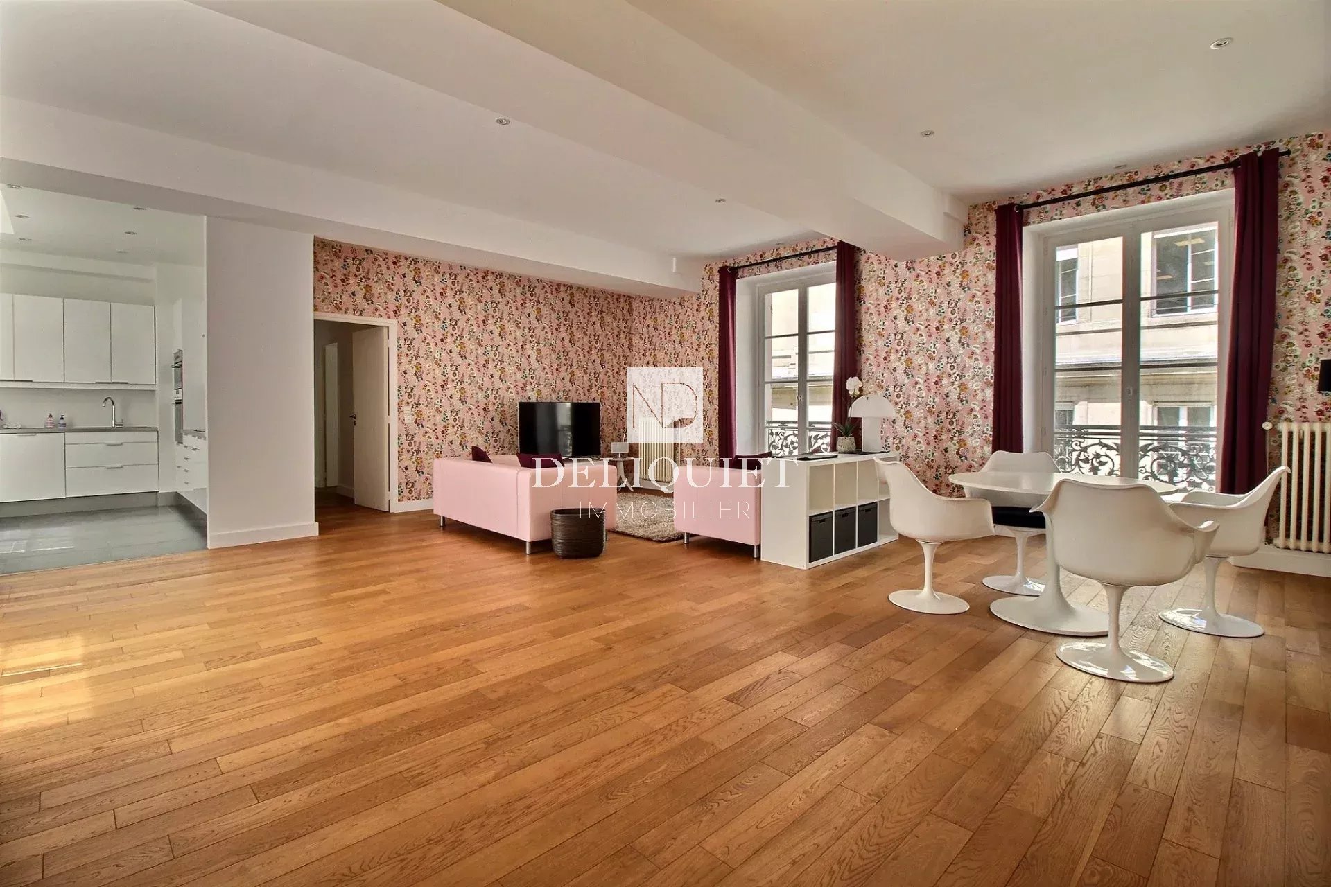 Paris 6e. A deux pas de place Saint-Sulpice. Rue Bonaparte. Au 1er étage par ascenseur d'un immeuble bien entretenu, 3 pièces de 110m2 Carrez composé d'une vaste réception de 52m2 avec cuisine ouverte, deux chambres, une salle de bains avec douche et toilettes et toilettes invités. Une cave complète cet ensemble. En parfait état et traversant, cet appartement lumineux offre de beaux volumes et bénéficie d'un bon agencement.