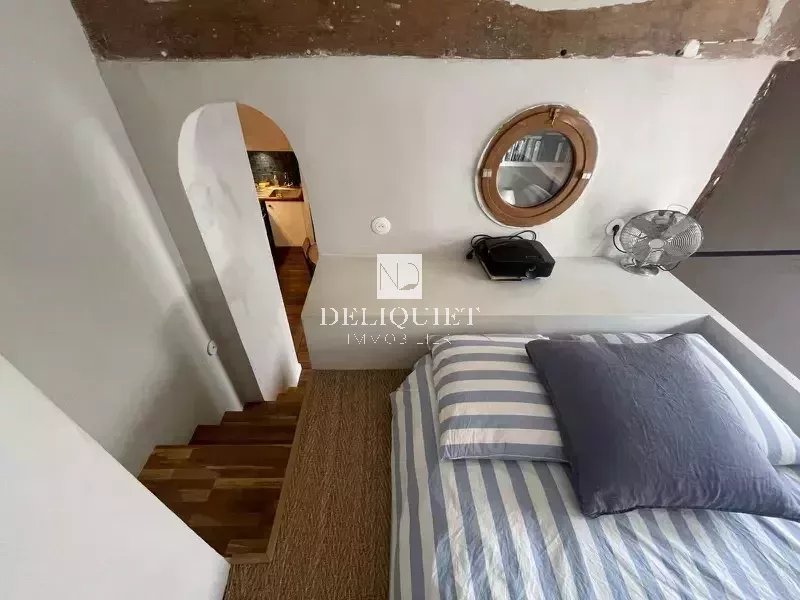 Situé au 3ème étage et donnant sur une agréable cour lumineuse, l'appartement est composé d'une entrée desservant une salle de douche avec toilettes, une pièce de vie généreuse et volumineuse intégrant l'espace cuisine, un espace chambre en mezzanine accessible par quelques marches, un coin bureau et un dressing. Une cave et un débarras sur le palier complètent cet ensemble.