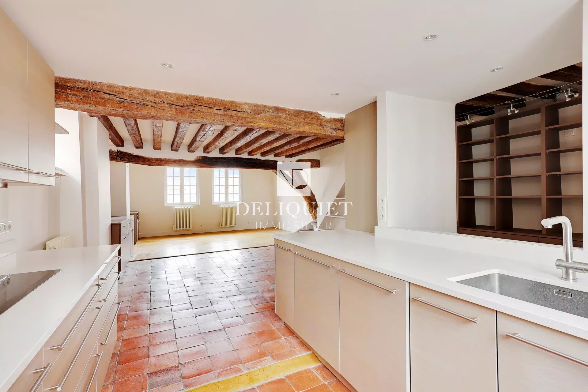 Ce duplex lumineux bénéficie du charme de l'ancien avec ses poutres apparentes, bénéficie d'un environnement calme et d'une absence de vis-à-vis.